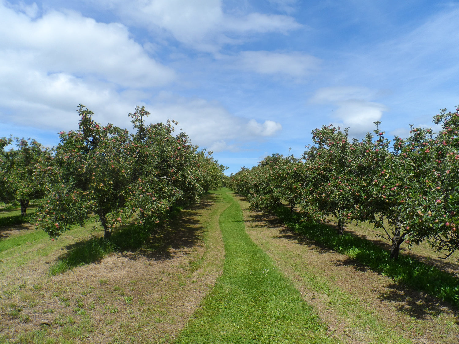 We don't pick the apples, or even shake the trees. We wait for them to fall naturally because we believe that this is the time when the apples have the most sugar and flavor. A few bumps and bruises don't hurt them, as they are destined for the apple press and not the supermarket shelves. As different varieties ripen at different times, the harvesting season usually runs from September through late November, although the weather can alter these times slightly.